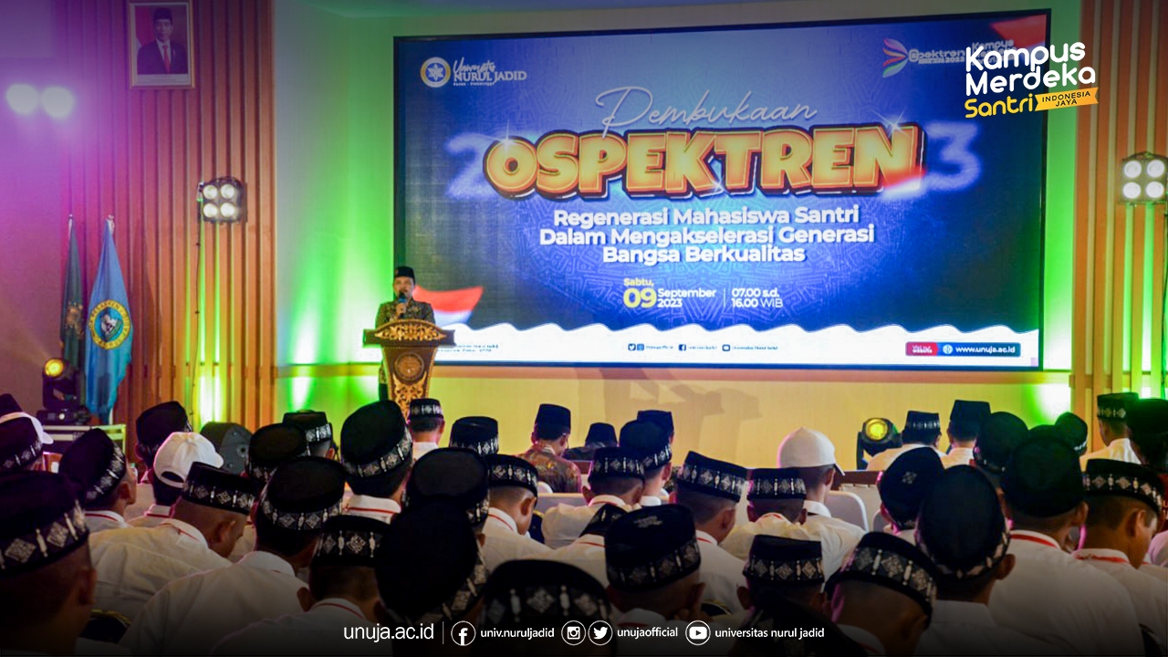 Probolinggo - Universitas Nurul Jadid (UNUJA) menggelar pembukaan Orientasi Pengenalan Kampus dan Pesantren (OSPEKTREN) tahun 2023 pada Sabtu (09/09/2023). Acara tersebut dihadiri oleh 888 peserta OSPEKTREN yang memenuhi aula 1 Ponpes Nurul Jadid.